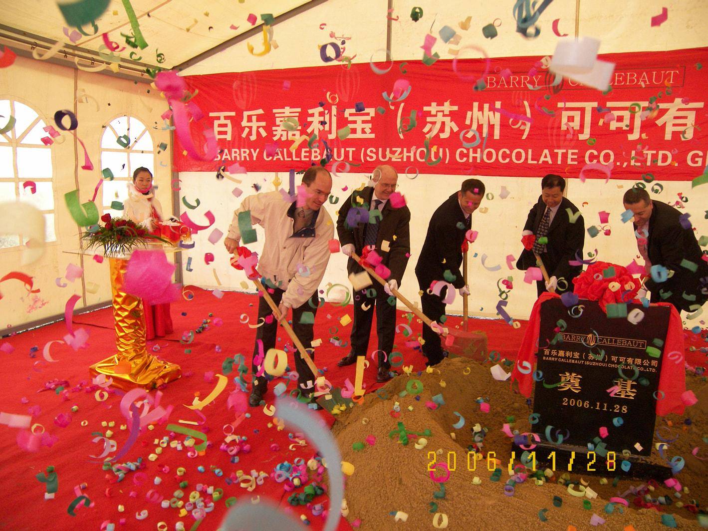 After being granted a business license and opening a sales office in Shanghai, China, in October 2006, Barry Callebaut today laid the foundation stone for a new state-of-the-art chocolate factory in Suzhou, China. Suzhou is located in the Greater Shanghai area and offers an excellent infrastructure in a new industrial park. Construction and start-up time for the new factory will take between 12 and 18 months. The total investment is about CHF 20 million (approx. EUR 13 million). The new factory will have a capacity of 25,000 tonnes and offer about 100 new jobs once it is running at full capacity.
