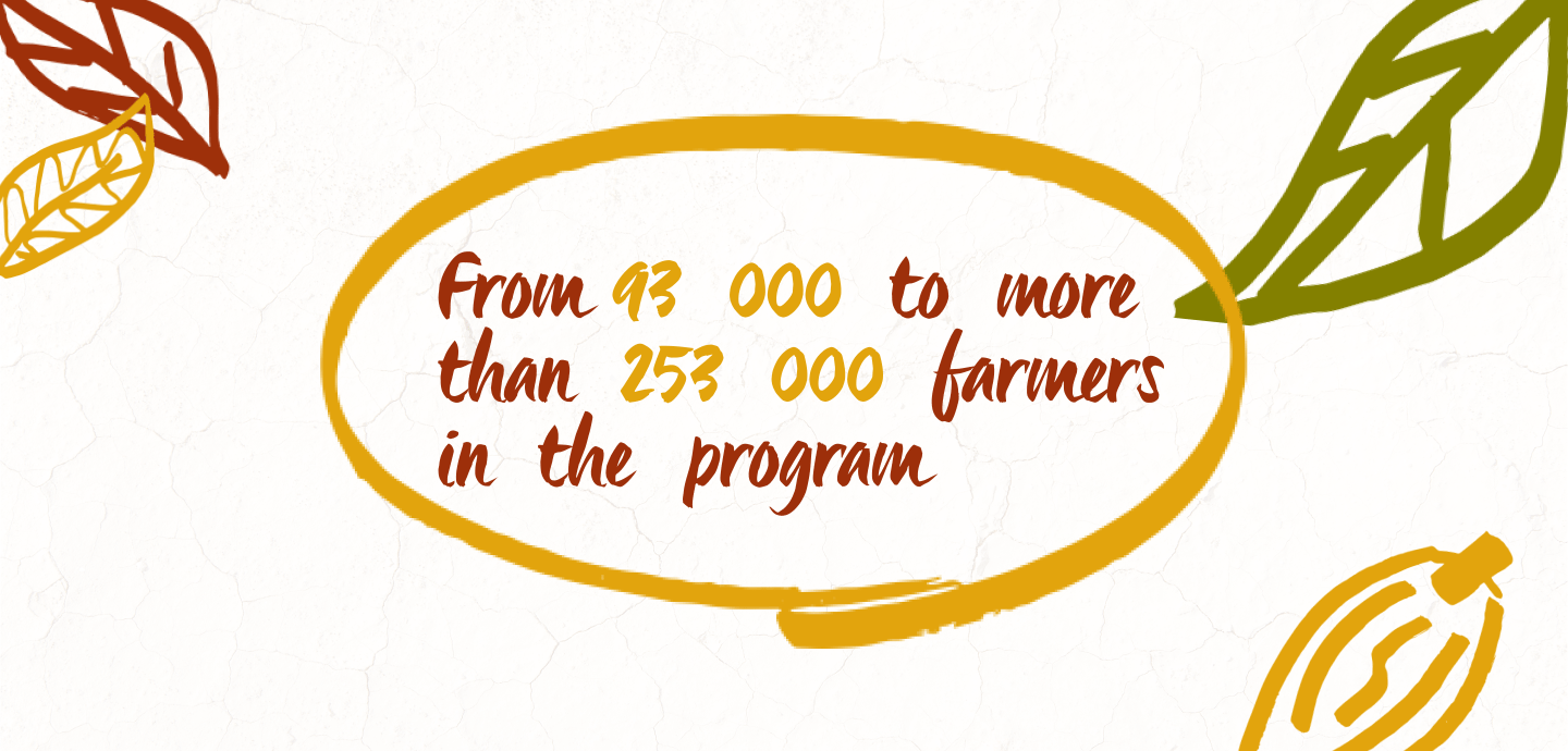 - Engaging farmers in the program: from 93 000 to more than 253 000 cocoa producers in 2023