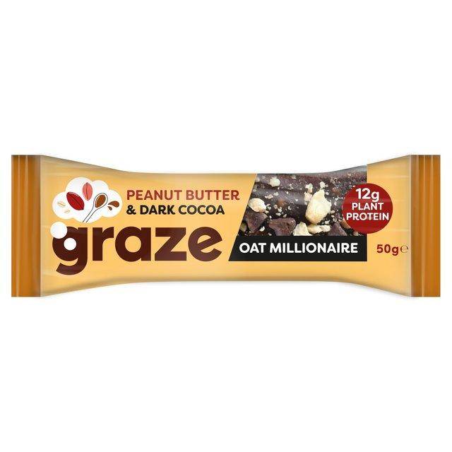 Cereal bar by Graze, with 10g plant protein. Vegan mentioned back of pack.