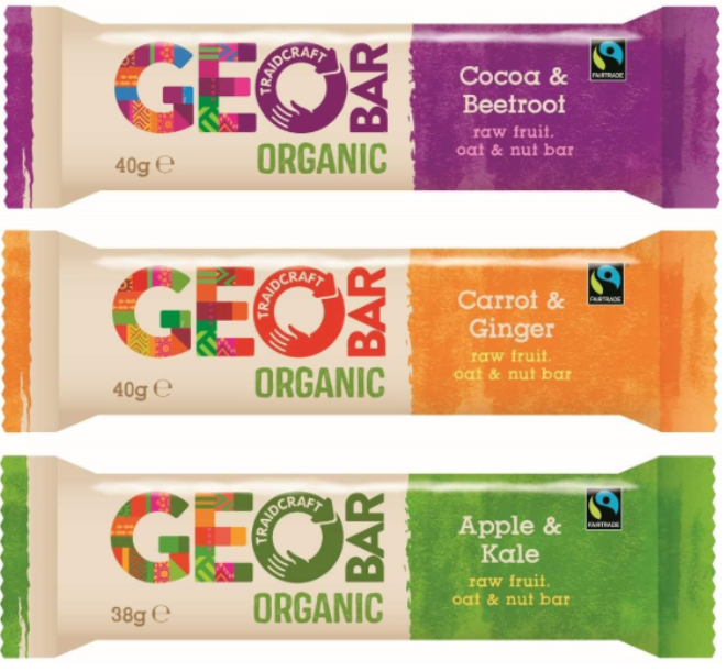 • Fruit & nut bar with veggie flavors, by GEO bar