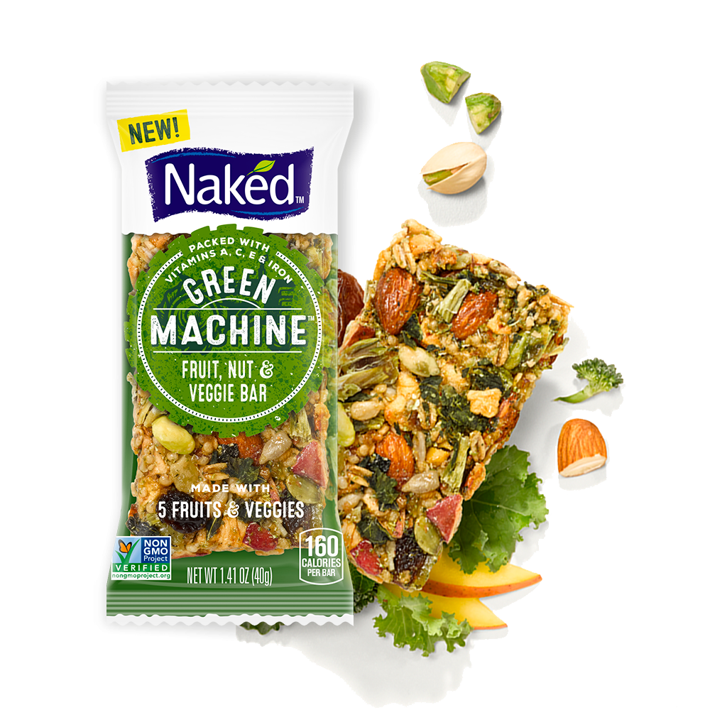 Fruit & nut bar made with 5 fruits & veggies, by Naked.