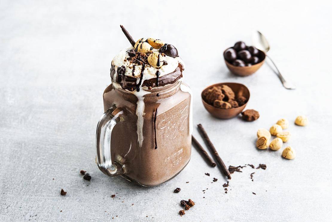おいしいチョコレートソース、ホイップクリームをトッピングし、クランチボールをデコレーションした非常に贅沢なチョコレートフリークシェイク。オンラインとオフラインの現実世界でフォロワーや友人と共有する本当の楽しみ。