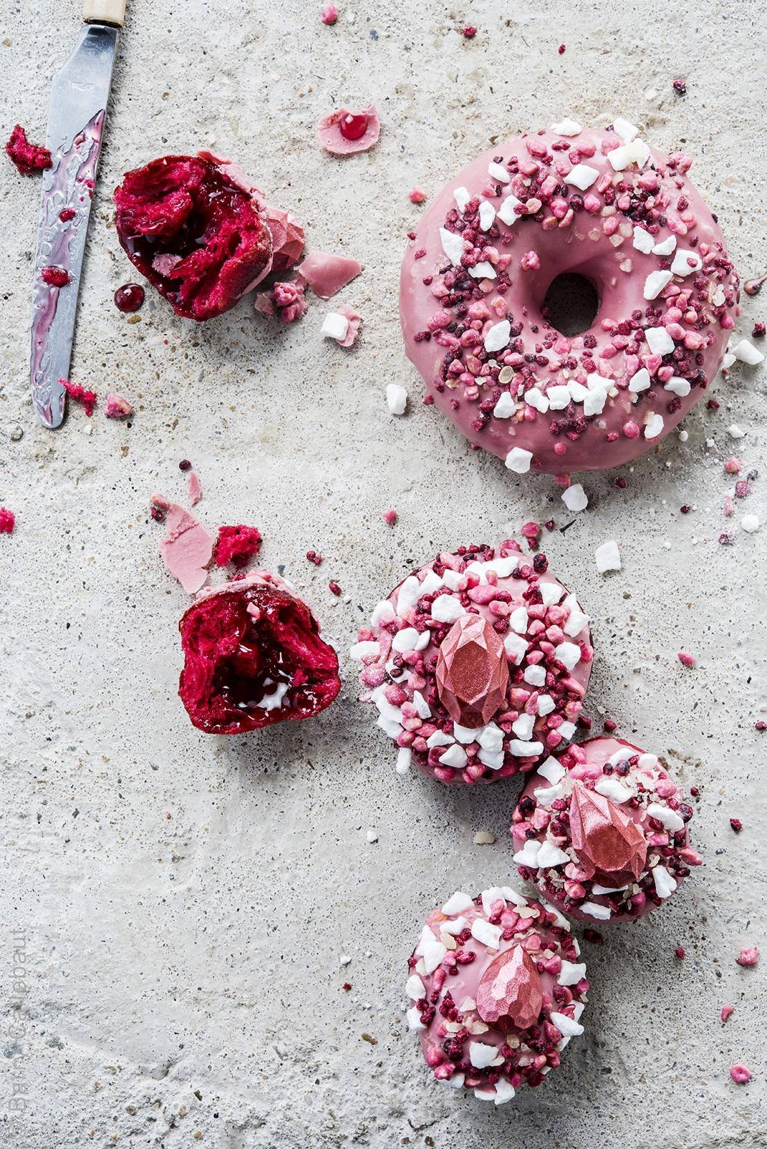 ロンドンのルビーでヴィーガンや砂糖不使用のおいしいおやつができます。例えばこのようなカラフルなドーナツもできます。