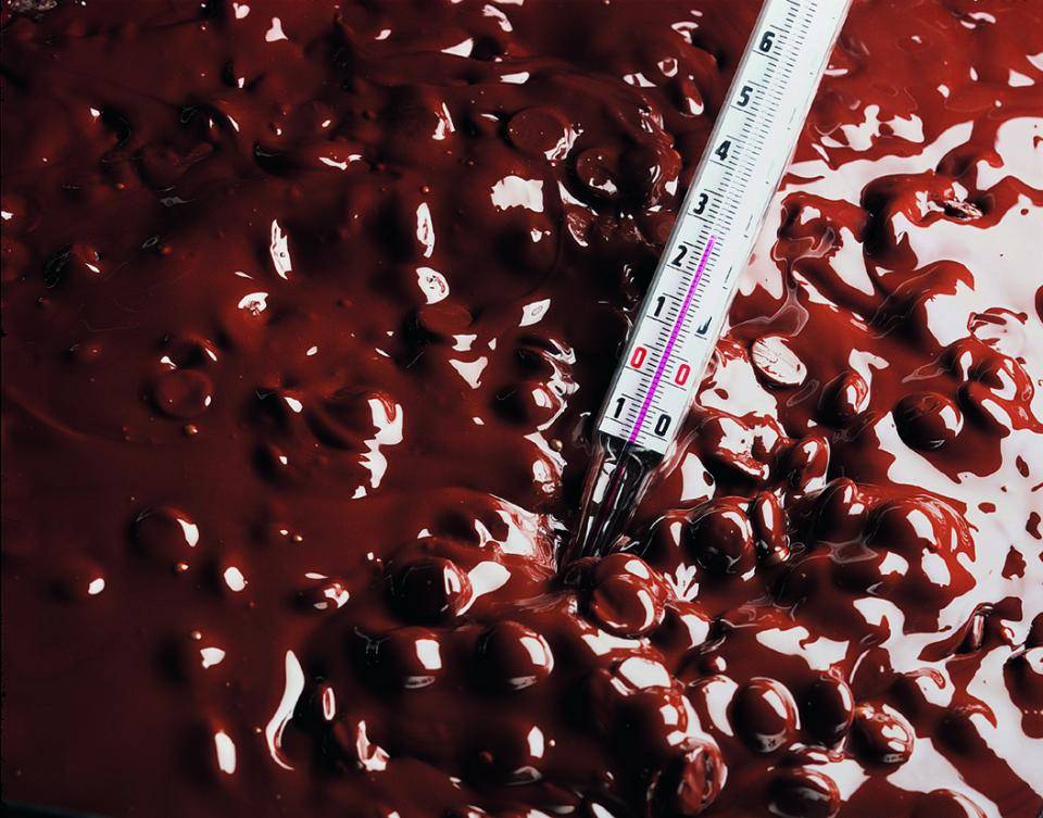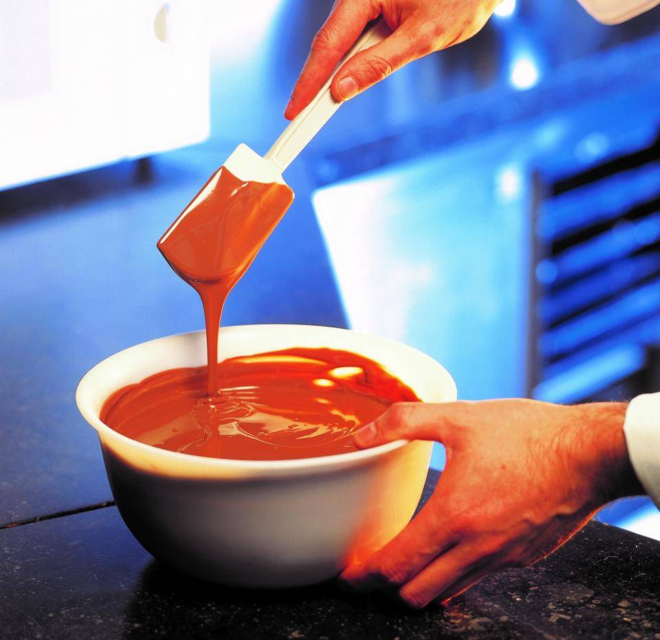 O chocolate deve, preferencialmente, ser derretido numa temperatura entre 40°C e 45°C.