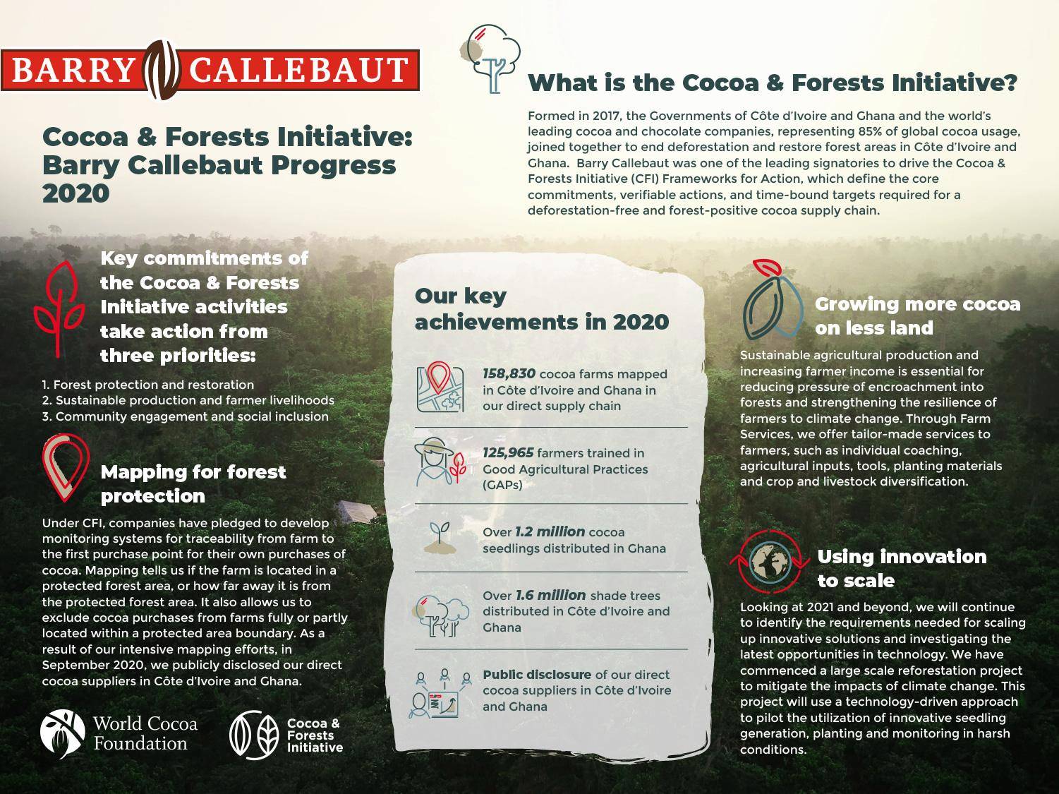 Barry Callebaut is committed to ending deforestation in the cocoa and chocolate industry. Working in close partnership and collaboration with industry, governments, and civil society, we can continue to deliver on the objectives we set ourselves. For more information on our CFI Progress, please view our CFI Progress Report 2020.