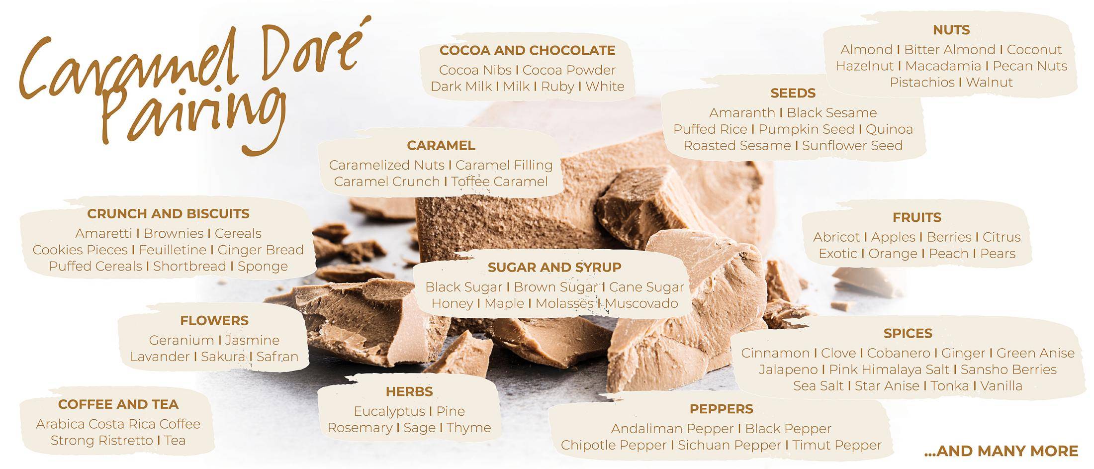 To create your own Symphony of Caramel, explore our Caramel offering: Caramel chocolate, caramel fillings, coatings, decorations & inclusions.